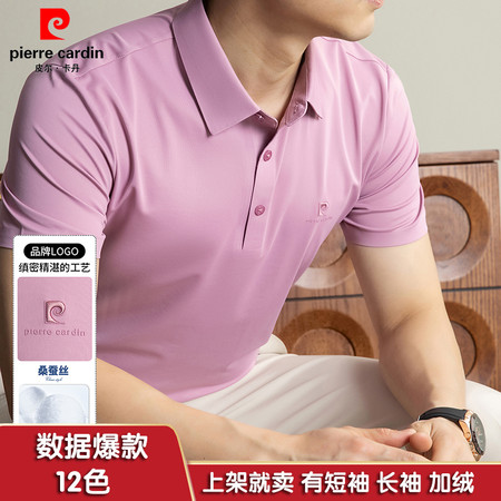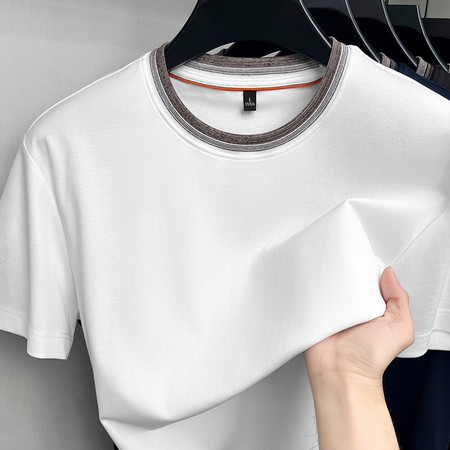 【2026新款短袖】t恤男夏季圆领打底衫半高领丝光棉半袖桑蚕丝V领纯棉翻领polo衫冰丝短袖纯色中年立领体恤