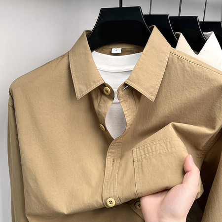 7色美拉德系100全棉真口袋休闲衬衫 男士时尚气质通勤百搭上衣 预缩定型宽松外套